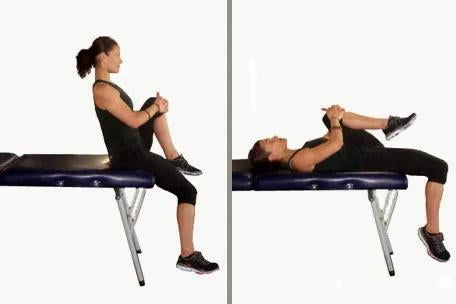 Test method: First, sit on a bed or a bench with your hips on the edge, slowly lean your body backwards, and at the same time hold one knee with your hands, leaning as far as possible toward your chest (as shown in the left picture below).