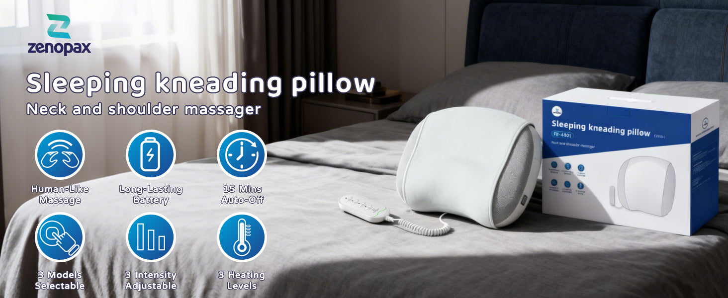 Zenopax Neck Massager for Pain Relief Deep Tissue, Cordless & Rechargeable Neck and Shoulder Massager with Heat,3 Modes & Intensities & Heatings 4D Sleeping Kneading Pillow